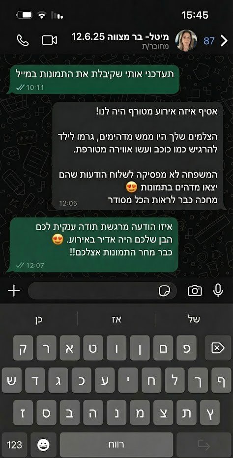 ל״Moments״ יש לקוחות מרוצים מאוד כי פעם הם חששו שהרגעים החשובים יתפספסו, והיום יש להם תיעוד מרגש שהם גאים בו.